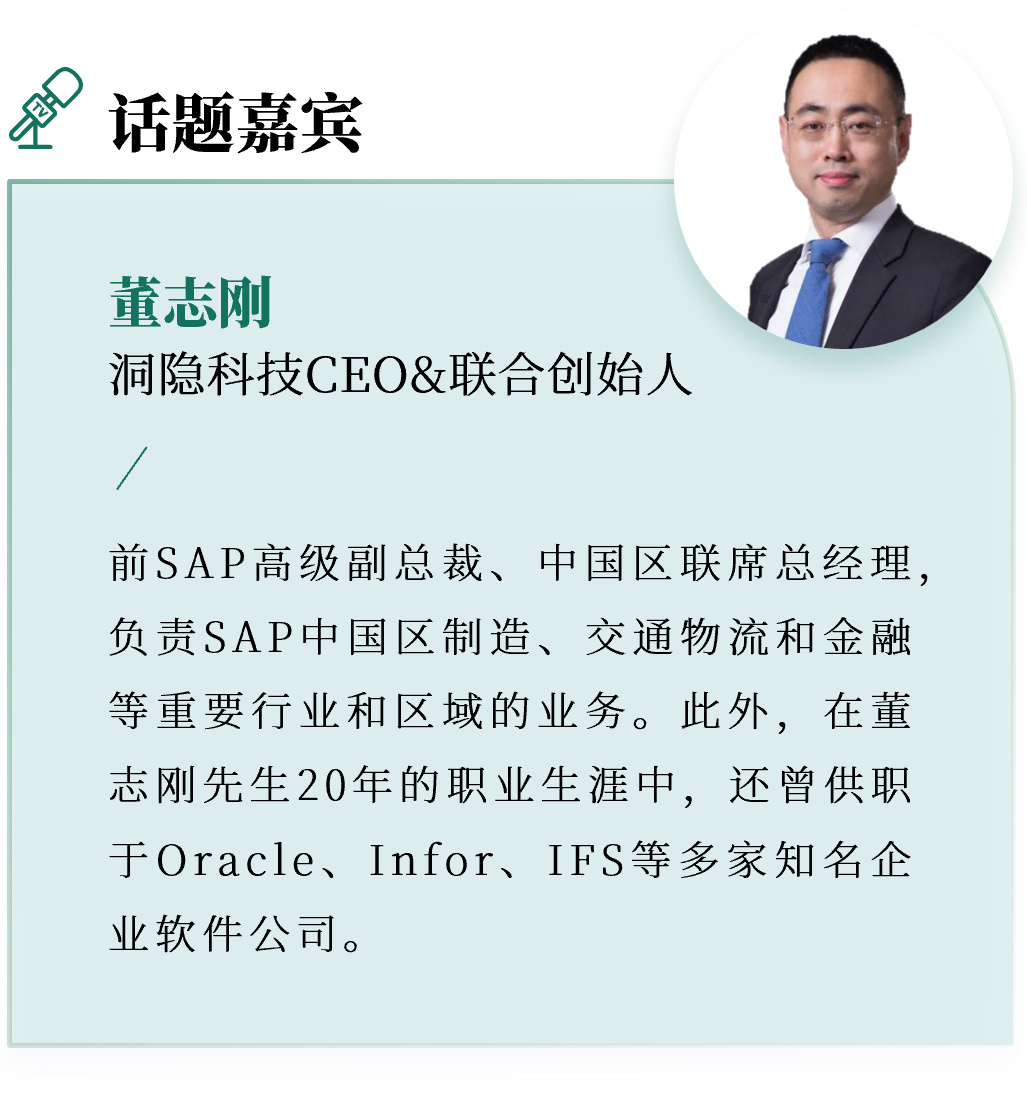 資料顯示,董志剛擁有在SAP、Oracle、Infor等多家知名企業(yè)軟件公司20年的從業(yè)經(jīng)驗(yàn),并帶領(lǐng)大型擁有國際視野的團(tuán)隊(duì)賦能過眾多智能制造與工業(yè)互聯(lián)網(wǎng)企業(yè),在供應(yīng)鏈方面有著自己獨(dú)到的見解,也將帶領(lǐng)洞隱重點(diǎn)布局制造(新能源、芯片制造、生物醫(yī)藥)、零售消費(fèi)品、大型綜合物流、航運(yùn)貨代這幾大行業(yè)。