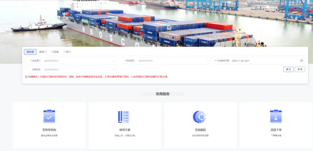 寧波遠洋內貿電商平臺是寧波遠洋聯合易港通、洞隱科技共同開發的全新航運數字信息服務平臺,包括用戶中心、訂艙中心、電子支付、換單便捷功能、滯惠寶服務、拖車服務競采、電商銷售七大功能模塊。
