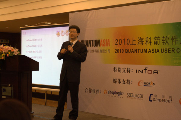 客戶代表DSV物流有限公司總經(jīng)理-Mr. Mirek Dabrowski的主題演講中,就中國(guó)第三方物流市場(chǎng)現(xiàn)狀和未來(lái)兩年的發(fā)展趨勢(shì)、外資物流公司如何在中國(guó)選擇合適的物流IT系統(tǒng)合作伙伴等闡明了自己觀點(diǎn),并分享了如何應(yīng)用科箭的Power WMS 6.0 快速部署方案,兩周內(nèi)滿足其高科技客戶的售后配件Hub的物流需求的美妙體驗(yàn)。