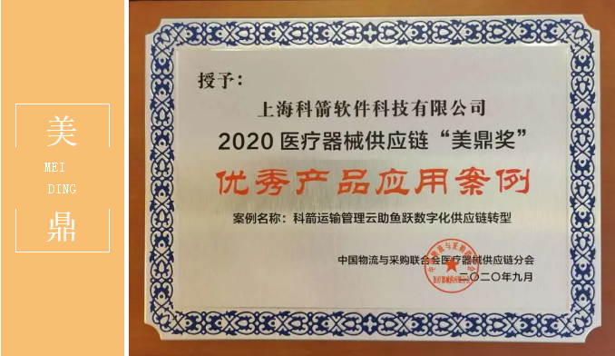 本屆年會致力于分享政策法規、優秀的實踐案例及具有創新價值的理念與技術,幫助行業決策者洞察未來趨勢并推動整個醫療器械行業的發展。在2020醫療器械供應鏈“美鼎獎”頒獎典禮上,科箭軟件榮獲“優秀產品應用案例”獎。