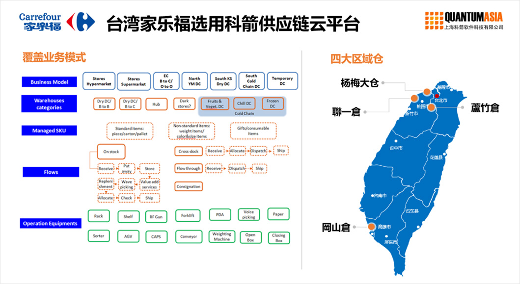 家樂(lè)福目前在臺(tái)灣擁有136家門(mén)店,明年可能達(dá)到400家。在全球傳統(tǒng)零售業(yè)向新零售的業(yè)務(wù)變革大潮流中,同樣伴隨著整個(gè)供應(yīng)鏈管理的變革,這都給家樂(lè)福臺(tái)灣供應(yīng)鏈后端的倉(cāng)儲(chǔ)和運(yùn)輸管理提出了更高的挑戰(zhàn)和要求。