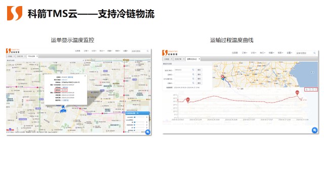 冷鏈在于能控制易腐產(chǎn)品溫度,確保其使用的安全性,保證消費(fèi)者在購買時(shí)產(chǎn)品仍具有良好的品質(zhì)。冷鏈的每一個(gè)環(huán)節(jié)都需要參與控制,任何一個(gè)環(huán)節(jié)出錯(cuò)而使冷鏈斷裂,或是在倉庫的月臺上,或在運(yùn)輸途中,或在儲存過程中,或是在零售超市里,都很容易產(chǎn)生問題。科箭TMS云通過與溫控儀集成,運(yùn)單搭載了溫控設(shè)備,在可視化運(yùn)單上可以監(jiān)控溫度;查詢運(yùn)單對應(yīng)的發(fā)貨訂單貨運(yùn)軌跡時(shí)可以顯示溫度曲線 ,讓貨主、運(yùn)輸方、客戶實(shí)時(shí)了解貨品狀況。