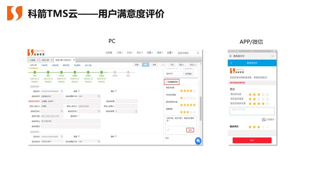 我們在網(wǎng)購后都會被要求就產(chǎn)品、物流、服務(wù)進(jìn)行評價(jià),以便讓商家了解客戶滿意度,及早發(fā)現(xiàn)問題,以免影響客戶回購。在企業(yè)級服務(wù)中也是一樣,客戶在訂單‘已簽收’狀態(tài)的發(fā)貨訂單界面可進(jìn)行滿意度評價(jià),也可以在微信或APP的全程跟蹤已簽收模塊進(jìn)行滿意度評價(jià)。