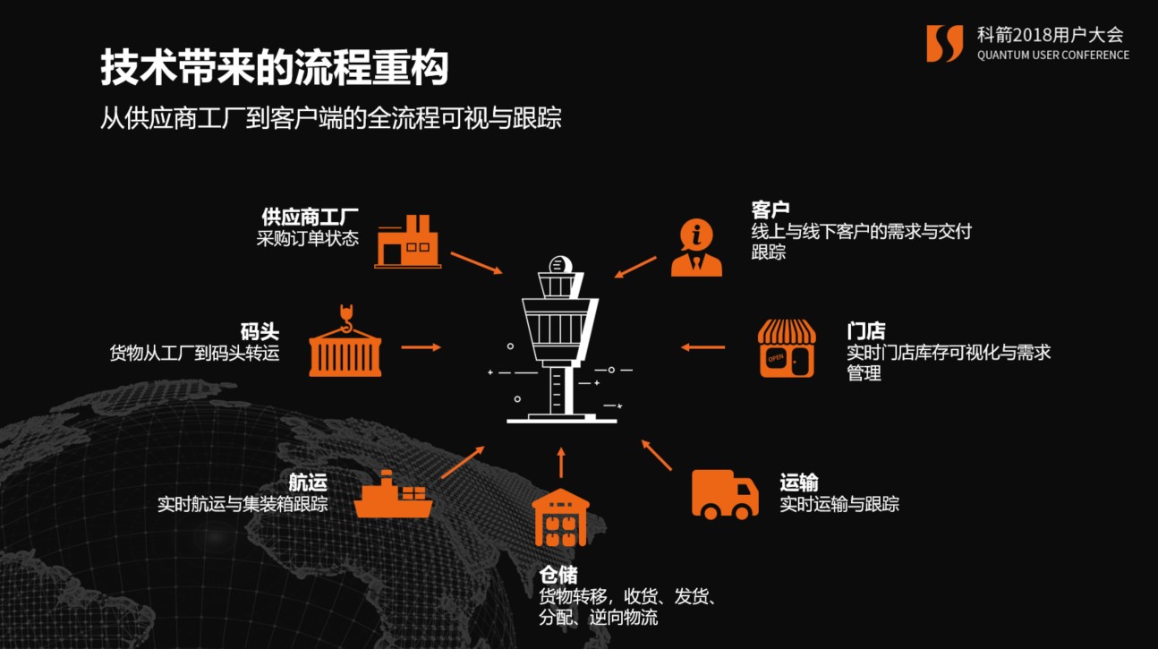 總的來說我們希望通過這些新技術的應用,能夠幫客戶進行商業(yè)模式和流程的再造,我們供應鏈云平臺的設計理念就是希望一個客戶從它的供應商經過各種渠道,不管是碼頭航運、倉儲運輸,零售業(yè)可能是到門店,制造業(yè)關注入場,怎么樣連接供應商。我們的云平臺正是解決這個連接的問題,能夠把整個供應鏈上下游通過一個云平臺快速連接。第二,全流程的可視化。在整個全流程中,如果你的企業(yè)有這樣的云平臺,整個供應鏈效果都會得到很大提高。