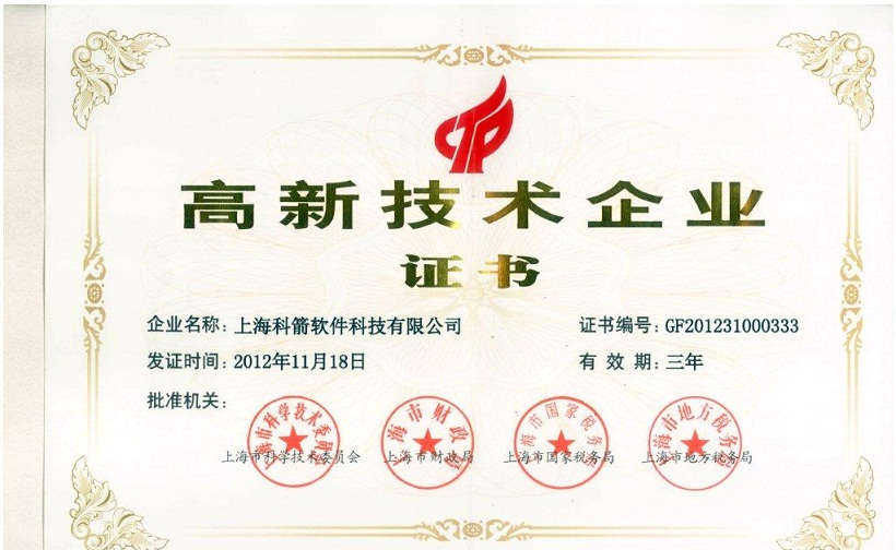 科箭軟件再次榮獲上海市“高新技術(shù)企業(yè)”認(rèn)定