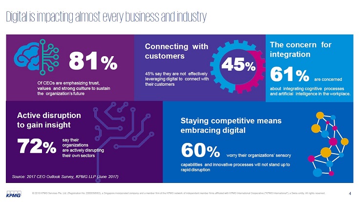 我們看供應鏈未來的趨勢,談到一個最重要的話題就是數字化,數字化本身對于企業來說意味著什么,可能在過去的信息化時代大家都關注怎么通過信息化降低成本提升效率,但是談數字化大家一定會談到數字化轉型,數字化轉型今年下半年以及明年會慢慢被淡化,新的詞叫數字化增長。為什么會談到數字化增長?數字化是一個手段,轉型也是一個手段,回到本身我們所談的數字化轉型的目的或者目標上,是要談到未來的增長,通過數字化手段,通過轉型的方法去獲得你新的市場,針對新客戶新的產品品類,獲得你更多的收入增長或者利潤增長。如果有新的市場和產品品類聚焦,最大的前提是你得了解那個客戶,但是我們看這個報告,這是2017年的報告,45%企業認為自己和客戶之間是沒有鏈接的,今年這個數據更大,50%。為什么?是以前鏈接斷裂了還是什么情況,其實不是說比例增加了,而是企業們對自己和客戶之間的鏈接的要求比以前更高了。