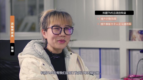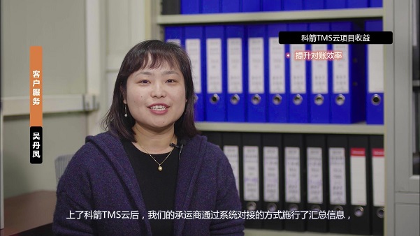 客戶服務吳丹鳳:上了科箭的TMS云后,我們的承運商通過系統對接的方式,實現了匯總信息,客服可以實時查詢訂單的執行情況,我們也為客戶提供了微信入口,客戶可以自主查詢訂單執行情況。