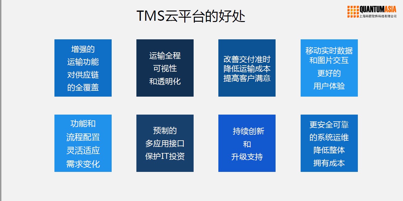 TMS云通過互聯網或手機APP及微信,為供應鏈上下游企業提供同一平臺,統一數據標準的訂單、計劃、執行/監控、結算及KPI分析等全流程管理,從而實現運輸過程360度可視化。TMS云在供應鏈全流程的SaaS服務生態,未來還可為貨主及物流公司提供庫存優化、數據挖掘、供應鏈金融等增值服務。