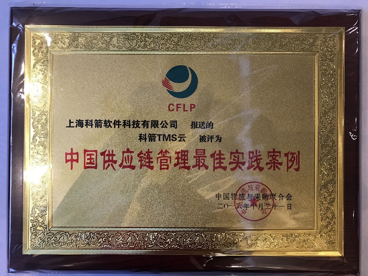 TMS云在零售、汽車、電商、食品及醫藥冷鏈、高科技及第三方物流等行業的成功運用,榮幸獲得中國物流與采購聯合會頒發的“中國供應鏈管理最佳實踐案例”。