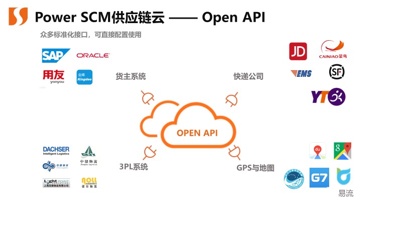 對(duì)于任何大型集團(tuán)的復(fù)雜信息化架構(gòu),產(chǎn)品的靈活性及開放性非常重要。此次合作也將整合伊利冷飲事業(yè)部原有的ERP、云商、易流等系統(tǒng),同時(shí)與立體庫WMS系統(tǒng)有效對(duì)接,監(jiān)控訂單的處理流程,可將訂單處理進(jìn)度及在途狀態(tài)分享給客戶,信息共享,直到客戶收貨完成,形成訂單管理的閉環(huán)。而這也離不開科箭供應(yīng)鏈云(Power SCM Cloud)開放的架構(gòu),通過Open API技術(shù)及云服務(wù)現(xiàn)有的眾多標(biāo)準(zhǔn)化接口,能方便地通過簡單配置就實(shí)現(xiàn)系統(tǒng)打通。