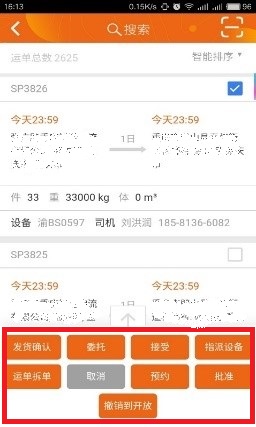 如在外需要緊急發貨,可以通過搜索框找到相應運單,選擇“指派設備”后,進行車輛及司機指派,簡單三步就能在手機上完成這一運輸執行流程。