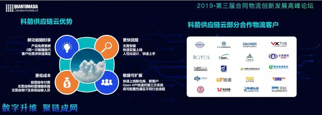 基于以上三個客戶案例,蘭鵬先生總結了科箭供應鏈云的優勢: