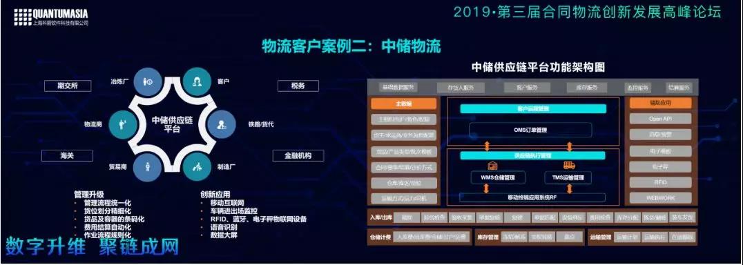 蘭鵬表示,這個答案肯定是可以的。因為科箭已經進行了成功的交付。也就是說,云平臺產品不僅能完成一些標準化的交付,也可以做很多個性化的開發。中儲的整個平臺可以連接到冶煉廠、物流商、貿易商、制造廠、鐵路、貨代、客戶等。還可以通過供應鏈協同的平臺,延伸到海關、金融機構、稅務等,只需要一些API對接來做實現。還有一些創新的應用,比如移動互聯網的應用,車輛進出廠的監控、藍牙、電子設備、語音識別、數據的大屏分析展示等。